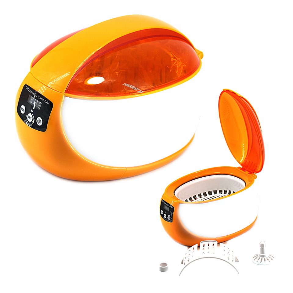 The device has a capacity of 750ml, with a capacity of 150 * 130 * 50mm. The device provides electronic control, there are 5 modes of operation. The power of the device is 50 W. The container of the device is covered with transparent glass, so that you can observe its operation during the cleaning process. There is a removable plastic separator that allows you to get the cleaned items without touching them.