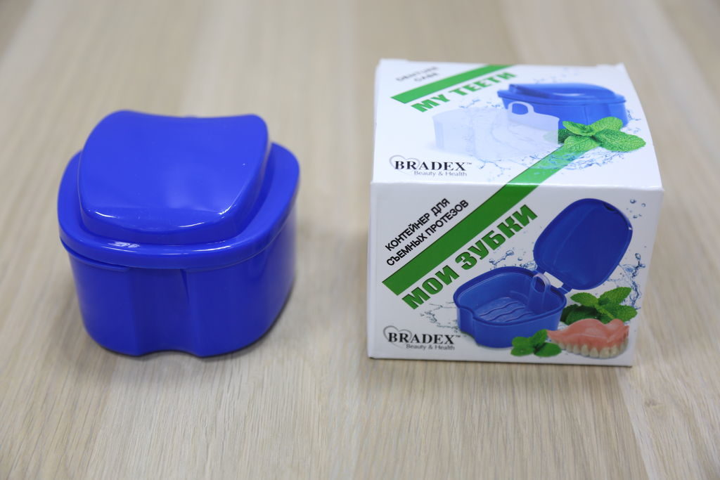 Many buyers advise buying such a case because of the successful brush for cleaning the removable structure - its head with white bristles cleans the outer surface of the prosthesis, and the black head cleans the inner cavity. A mirror is built into the container lid, allowing you to install the structure anywhere. Another advantage of the device is the presence of a lock on the lid, which completely excludes the possibility of accidental spillage of the disinfectant. The delivery set also includes instructions describing the case, and recommendations on how to properly store prostheses in it.