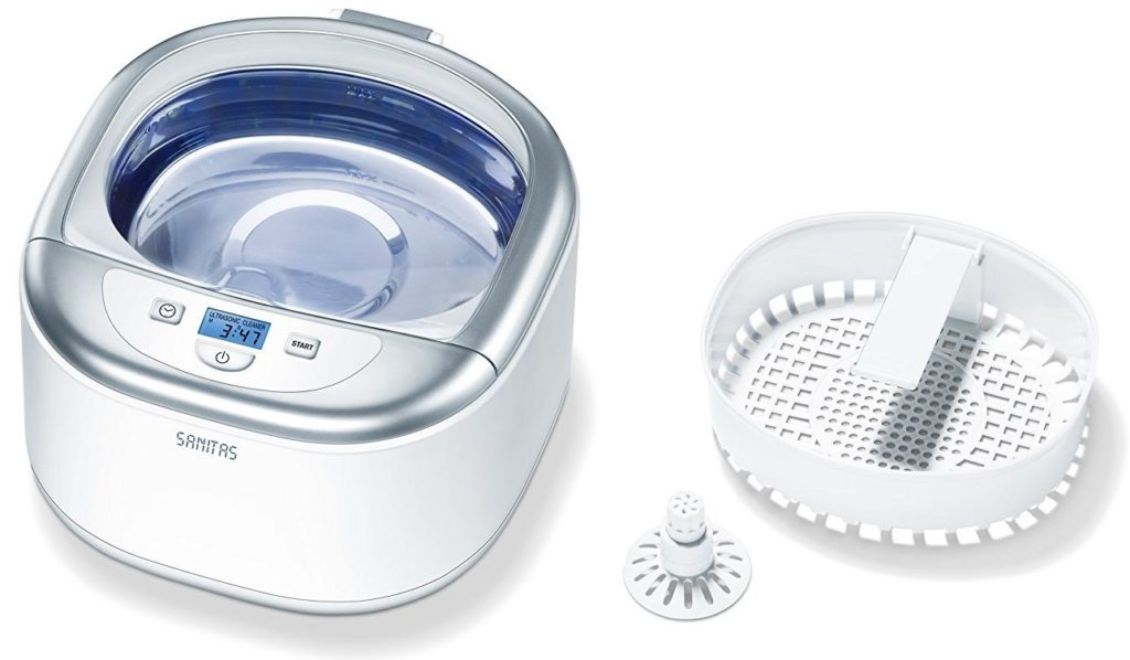 A convenient countdown timer can be set to the following times: 1:30, 3:00, 4:30, 6:00, 7:30. As a rule, one session of 3-4 minutes is sufficient to clean removable dentures. Cleaning does not have to be done daily, you can do it once every few days. The tray has a non-removable stainless steel container; the kit includes a plastic separator that allows you to remove the items to be cleaned without touching them with your hands.