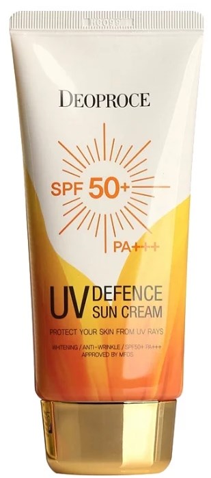 Sunscreen with light toning effect from Deoproce. The manufacturer guarantees not only full sun protection (SPF 50+ PA +++), but also contributes to the production of collagen, increases the firmness and elasticity of the skin, its faster recovery and renewal. Also prevents the appearance of freckles and other pigmentation. Titanium dioxide is used as a physical filter, ethylhexyl methoxycinnamate acts as a chemical filter. The product is packaged in a flat plastic tube with a long spout for easy dispensing. The cream has a light texture and differs from others in its beige tone, i.e. also serves as a BB cream, leveling the tone.