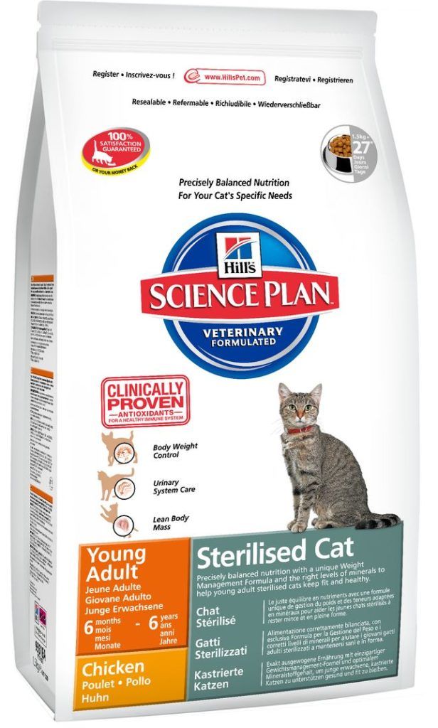Hill's Young Adult Neutered is a balanced dry food for neutered cats. The use of this feed allows you to refuse additional intake of vitamins. Sold in many specialized stores. There is a wide range of flavors to choose from. Three and a half kilograms will cost about 2,000 rubles.