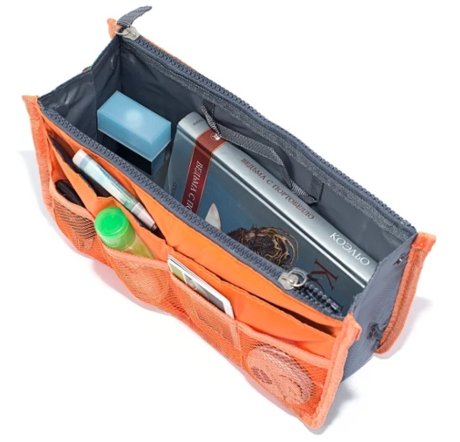A convenient functional attribute that can solve the eternal female problem of where the necessary things disappear at the right time. The size of the organizer is slightly larger than the wallet.