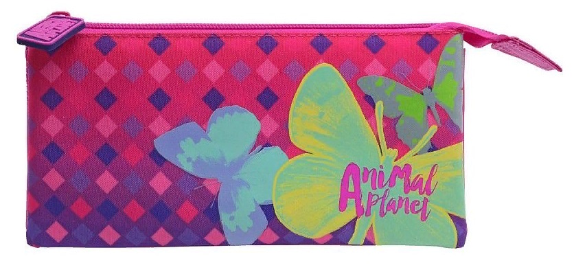 Convenient rectangular pencil case made of high quality stain resistant polyester. A small accessory with a pattern of stylized butterflies is perfect for school girls. Inside the pencil case is divided into 2 sections by a middle partition with a lock. The cosmetic bag is closed with a zipper fastener with a large plastic slider. The cost of the model, which can be ordered on AliExpress, is 381 rubles.