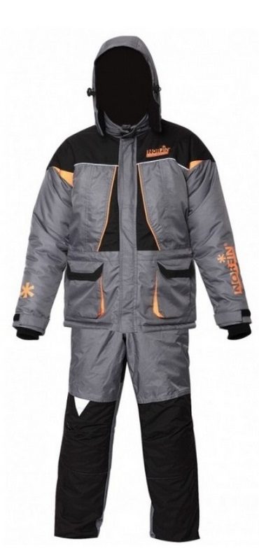 Such equipment is suitable for any type of winter recreation. The suit is durable and practical. Thanks to the turquoise gray color, the fishing lover can be seen from afar, even in snowfall.