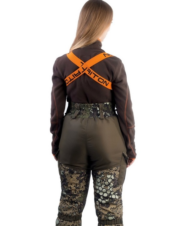 This beige suit is quite popular among women who love fishing. Includes three items: fleece, main jacket and bib. The model is made using micro-fiber insulation that can withstand temperatures down to -40 ⁰С.