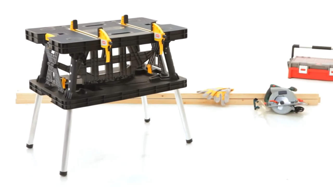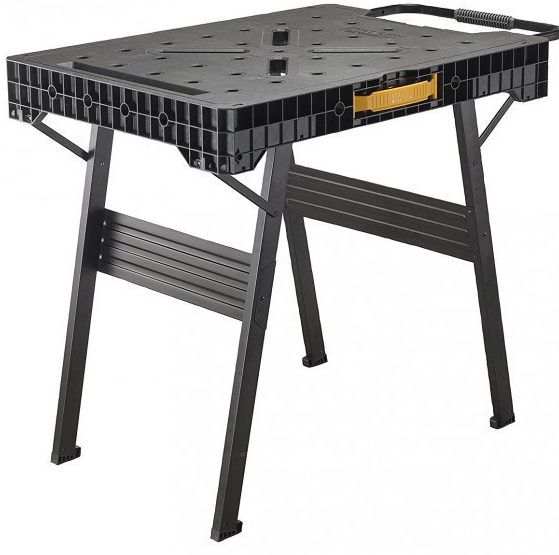 The robust, prefab design folds down completely for easy storage. Telescopic legs extend to a comfortable length to ensure an optimal table height. A reliable bed means the ability to secure joinery and power saws.