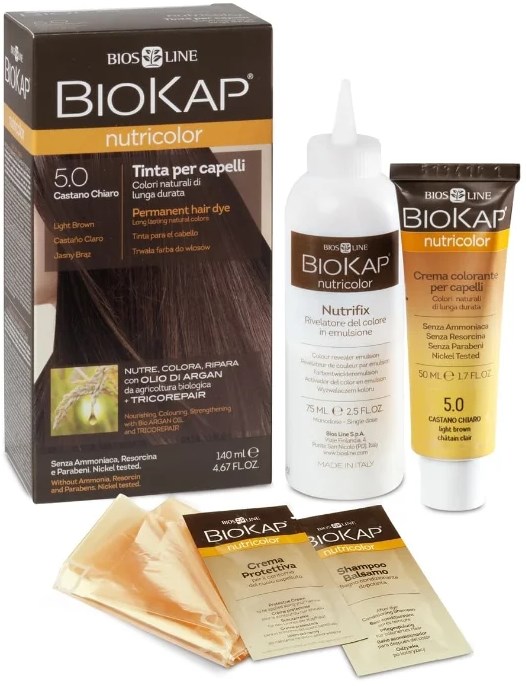 BioKap Nutricolor Delicato is an even more gentle line based on cereal proteins and fatty fruit acids. Like the previous version, this one guarantees long-lasting results even on gray hair. The palette contains all the same natural shades. The package is the same.