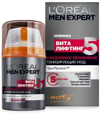 An excellent nourishing anti-aging day treatment for men over 50 from a well-known brand. The cream has successfully passed numerous dermatological tests, confirming its anti-aging effect.
