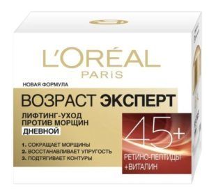 Cream made in France for women over 45 years old is focused on correcting the manifestation of age-related changes in the skin of the face, provoked by hormonal changes.