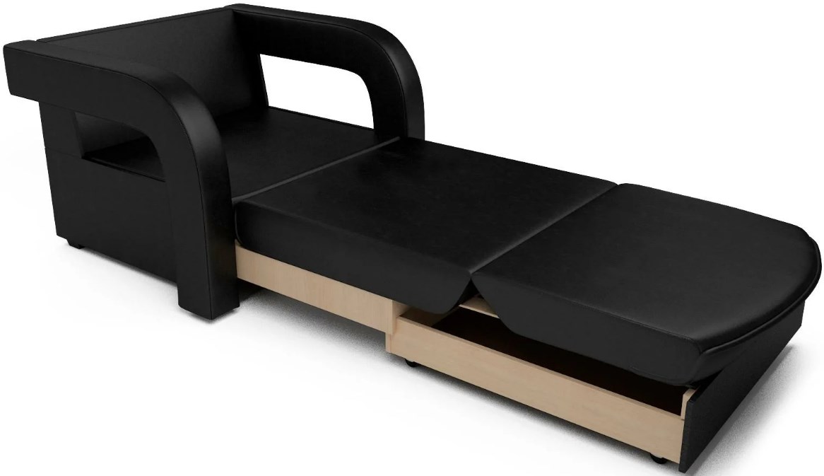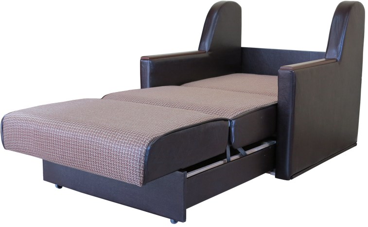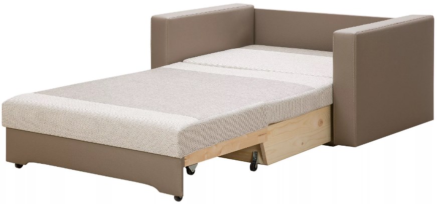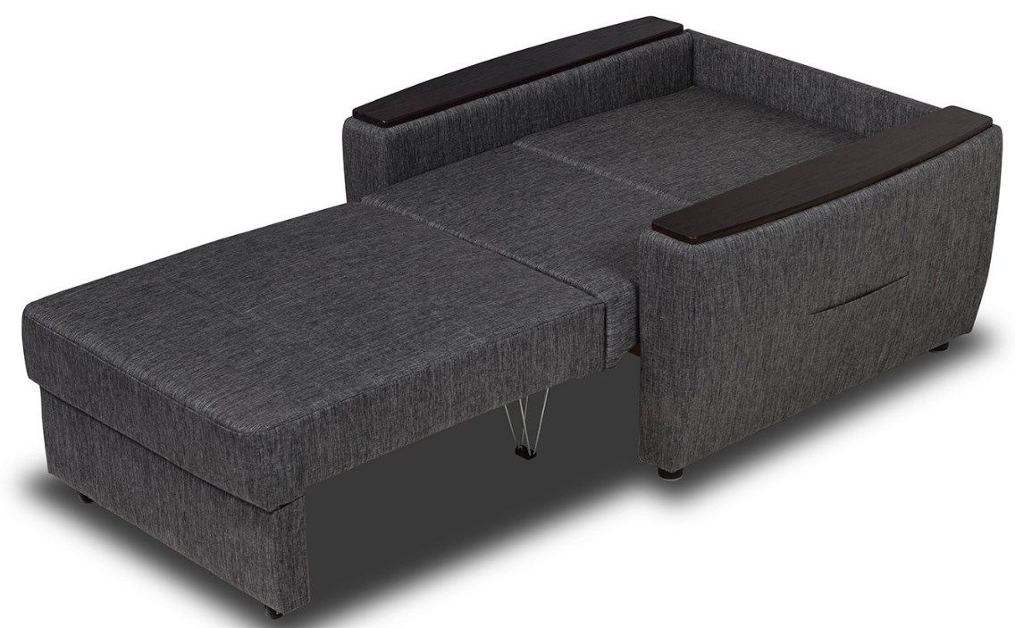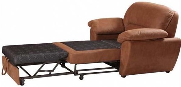 With the help of a double-folding mechanism, or, as it is also called, a folding bed, a berth measuring 62x199 cm fits in a compact armchair. For daily use, such a bed is narrow, but in extreme cases it can help out.