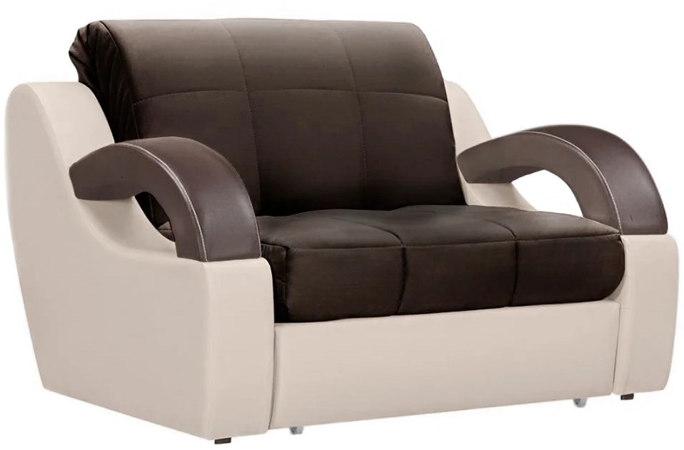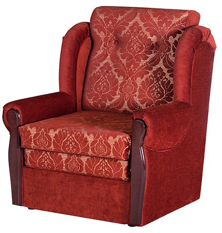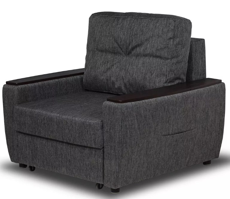 The classic-looking armchair-bed from the Russian manufacturer Charm-Design fits perfectly into the interior of both a business office and a bedroom. This model differs from those considered above by the material of the frame - in this case, a wooden beam is used. In addition, the chair is equipped with a linen box, which is very convenient. Model dimensions: width - 90 cm, height - 95 cm, depth 101 cm.