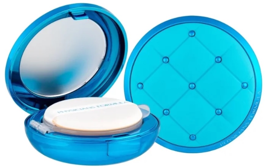 The fluid in a beautiful blue-metallic “powder box” contains natural ingredients. It is completely free of parabens and talc. Suitable for all skin types, it spreads evenly and creates a medium-strength coating.