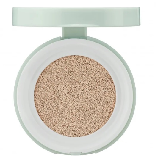 Inexpensive cushion from South Korea contains niacinamide, chamomile extract, asiatica centella, relieving inflammation, regenerating damaged epidermis and narrowing pores. Macadamia nut oil and adenosine control the secretion of the sebaceous glands and prevent the appearance of a greasy sheen. Cucumber juice maintains moisture balance.