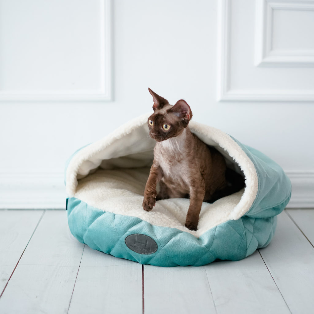 A comfortable bed with a removable cover is a secluded place for your cat to sleep.