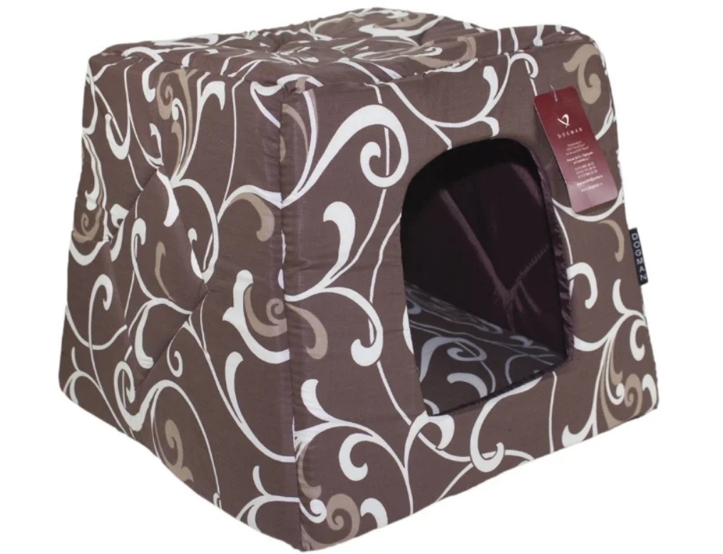 Models are more suitable for small breeds, an animal with a height of 25 centimeters will feel uncomfortable in a house. The house is original in its shape, but not very convenient in terms of disinfection and washing.