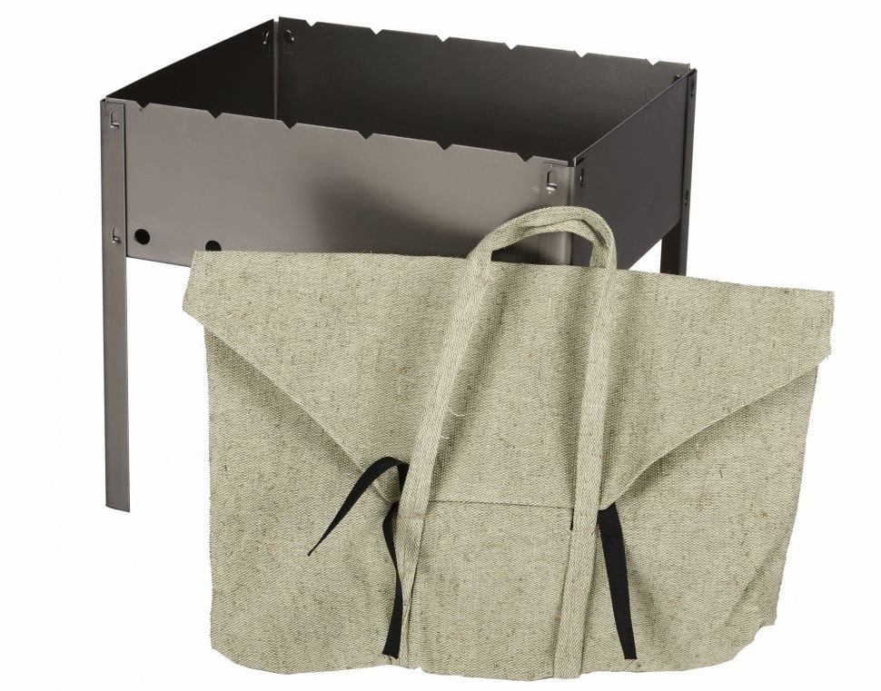 Sold in a bag, which makes it easy to carry. The bag is made of synthetics with comfortable handles. The manufacturer gives a 1 year warranty for the product. The assembled brazier has an optimal height, which makes the process of cooking barbecue as convenient and comfortable as possible.