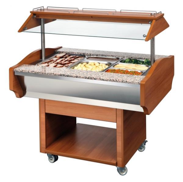 Installed on a special trolley equipped with wheels, the containers allow you to transport food from one point to another as quickly and efficiently as possible. At the same time, an additional advantage is that if the dish is heavy, the cook or hostess will not have to lift it. Such models are successfully used at buffets.