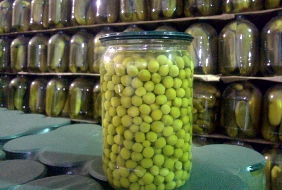 Brain or smooth-grain green peas for canning are bought in the market or grown in the vegetable garden. After hulling, the kernels are thoroughly washed and poured with salted water for boiling for four to six minutes. Then the liquid is drained, and the peas are washed again and laid out in sterilized glass jars with a volume of no more than half a liter.
