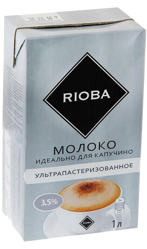 Milk under the Rioba brand is sterilized, prepared from normalized cow milk and is an excellent option for consumption as a standalone product and for use in preparing various dishes, including cappuccino. It does not require boiling, whips well and has a sweetish taste; when whipped, it forms an excellent dense foam that does not settle for a long time. Due to the fact that the products are pasteurized and placed in convenient tetra-pack packaging, they have a fairly long shelf life. Milk has a fat content of 3.5% and contains 2.8 g of protein, which favorably affects the gustatory and external qualities of the foam.