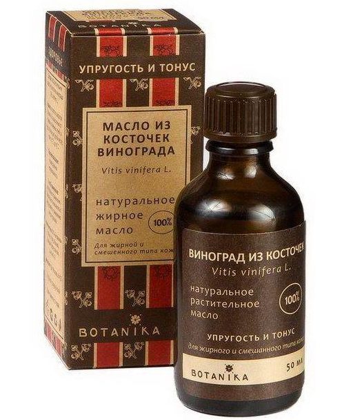 The Russian brand Botanika, produces a product from grape seeds that perfectly suits all skin types, perfectly moisturizes, nourishes, and with constant use, noticeably rejuvenates it. Like the products of other brands, it has a healing effect and also perfectly cleanses and tightens pores. It consists only of natural ingredients, can be used both in pure form, and added, mixed with other oils.