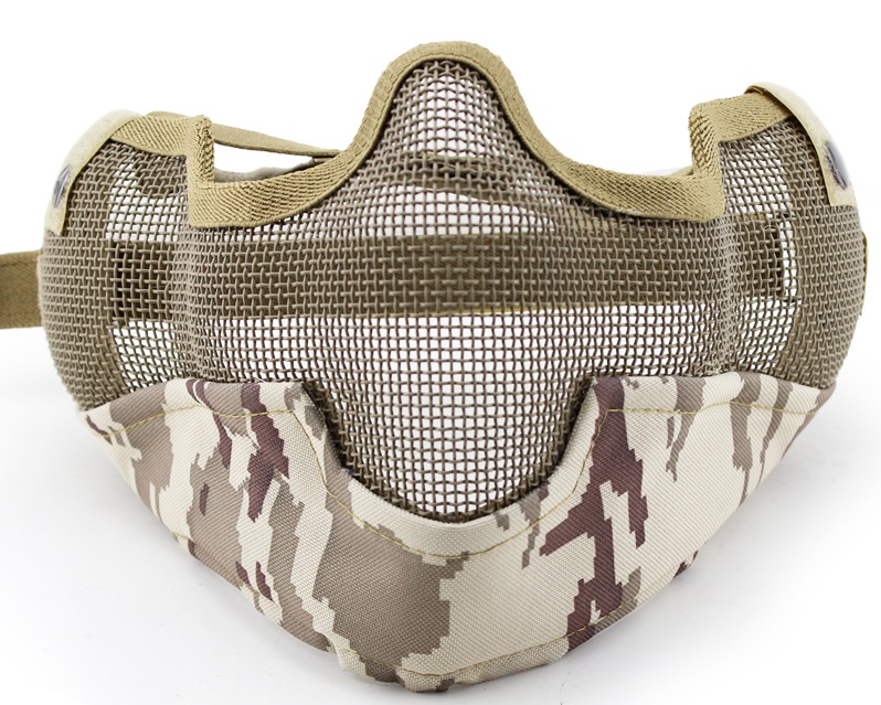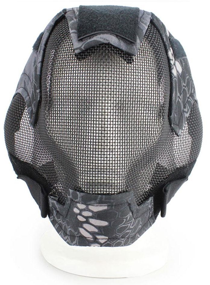 The main material of production is durable nylon with soft inner lining. Metal mesh inserts in the mouth, nose and ears do not impede the penetration of air, do not distort the voice and do not limit hearing, which is very important in airsoft battles.