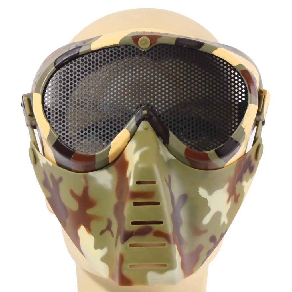 This tactical model consists of goggles with shockproof lenses and a plastic mask that can be removed if necessary.