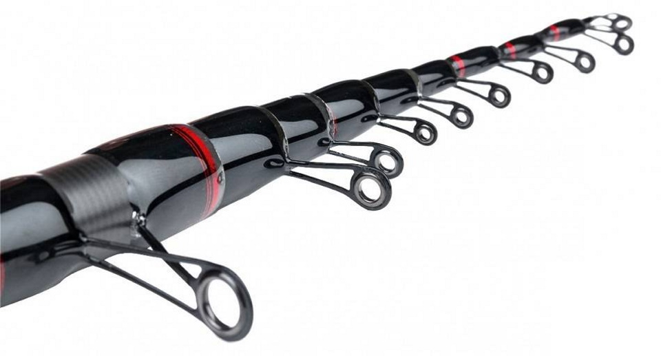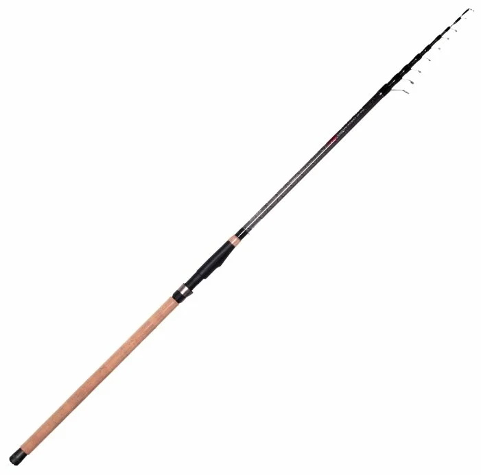 Long-distance telescopic model made in China. Made of IM8 carbon. Equipped with high-legged carbon silicon rings. Fast-acting reel seat ClipUp type. The comfortable handle is covered with a special material that reduces slipping even in wet hands. Longer feet and larger diameter guides provide maximum reach with less effort. Suitable for use as a regular Bolognese.