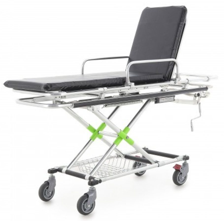 The model is used mainly in hospital buildings to transport the sick and wounded. Small dimensions and small weight indicators contribute to fast movement. The high level of security also stands out. The design is easy to clean and disinfect. Various kinds of chemicals do not provoke the oxidation process, which is a huge plus. The surface of the system is removable, which allows you to quickly switch from the "gurney" mode to the "stretcher" mode, which greatly facilitates the transportation procedure not only for honey. workers, but also for the patients themselves.