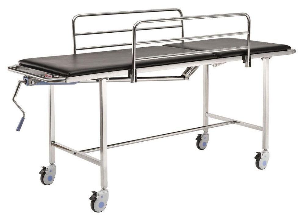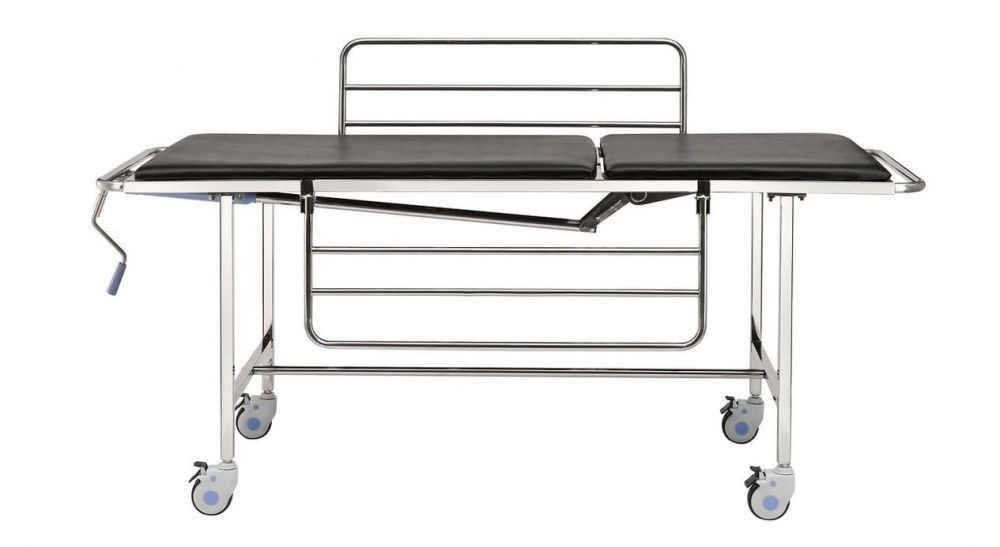 The trolley is actively used in ambulances. It can also be used for primitive operations. Stainless steel was used to make the frame. The head section is adjustable, so you can choose the most optimal angle. The back section rises and falls.The model is easy to use, so one person can handle loading the vehicle. Bounding arcs on both sides are lowered. Mattress included.