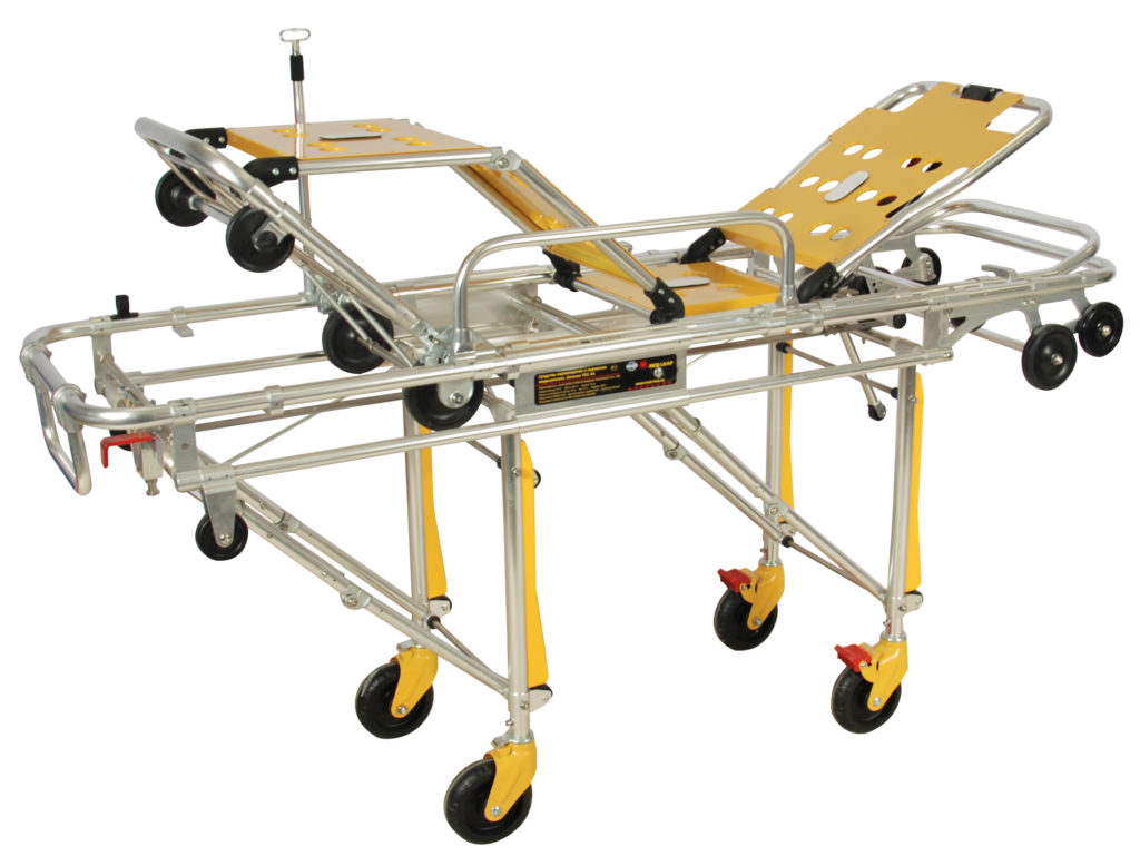 This gurney, like the previous one, is used indoors when you need to quickly and safely transport a person over short distances. The model belongs to the resuscitation type, because great for moving the seriously injured.