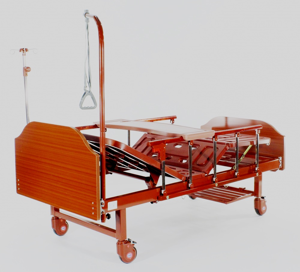 It is a medical device that consists of 4 sections. The height is manually adjustable using pre-installed joints and a movable platform.This is a good solution for elderly people who have to be under constant supervision of medical personnel, as well as people who are recovering in the postoperative period. The bed can also be used to treat and care for the elderly.