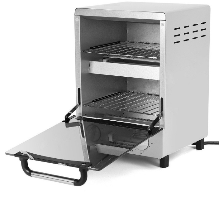 Description of appearance: wardrobe with two shelves, a heat-resistant glass door that opens from top to bottom, massive rectangular legs and two manual switches. The indoor unit is made of stainless steel. In addition to the technique, there are: a special removable container and rings for removing the tray with tools.