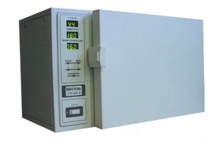 I operate the equipment as a disinfectant and dryer of medical materials (2 shelves), as well as sterilization of surgical instruments, glassware, heat-resistant syringes and needles for them. With high performance, little electricity is consumed Temperature conditions, operating time are automatically regulated. There is overheating protection.