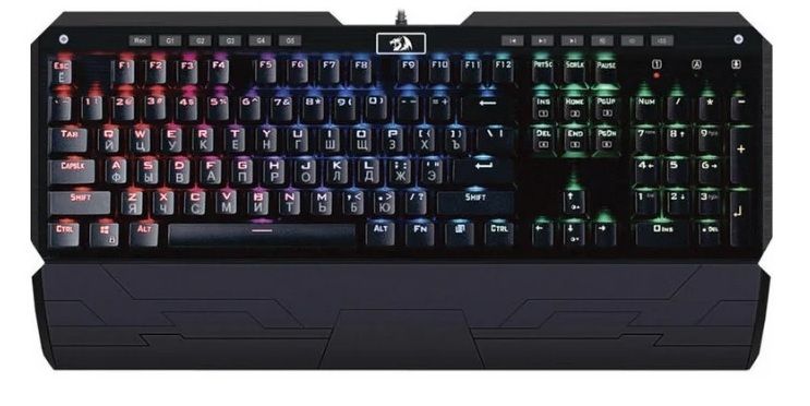 Keyboard with numeric keypad and dedicated palm rest that attaches securely and easily removes. Connection to PC is carried out via USB cable. The body is black, made of plastic and metal. The layout is in Russian and English. The unit is equipped with many functions. Some of them are: hardware blocking of the WIN key during the game, adjustable backlight brightness, simultaneous recognition of all keys, and much more.