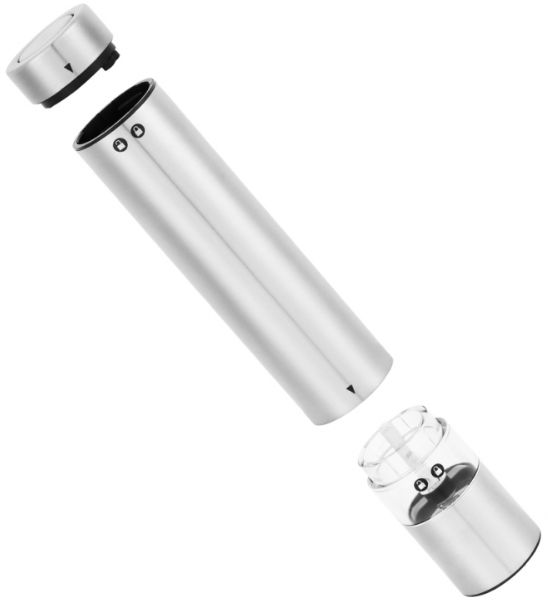 The body of the electric mill is made of durable and durable metal, and the millstones are made of ceramics. You can select the degree of grind. During operation, the product simultaneously grinds and doses spices. It is very simple to use, you need to hold the equipment over the dish and press the button. The product is 18.2 cm high and 3.3 cm wide. Battery powered. The average cost is 1,140 rubles.