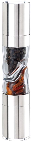 Stylish and comfortable mechanical mill with double-sided design. The grinder is equipped with ceramic burrs. The body is made of stainless steel. The transparent tank is made of glass. It allows you to control the consumption of seasoning, which guarantees the most comfortable use. The product is compact and easily takes up any place in the kitchen. The volume of the container is 100 ml, the height is 23.4 cm, and the width is 6 cm. It can be found in stores at a price of 836 rubles.