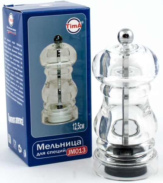 The mechanical mill is made of acrylic. The transparent body looks very sleek and also makes it easy to control the amount of content. You can observe the process of the mechanism, which is absolutely impossible to do in the absence of transparent walls. The millstones are made of ceramics, which can easily cope with grinding any kind of dry spices. The grinding intensity of the spices can be controlled by tightening or loosening the screw on the top of the housing. To grind, turn the top of the mill clockwise. The average price is 909 rubles.
