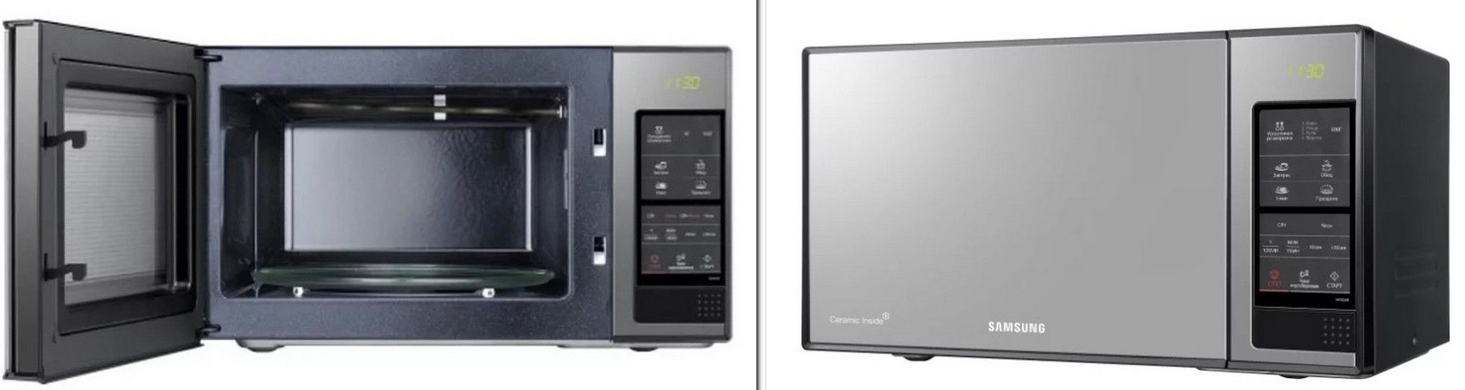 The main advantage of a ceramic coating is its antibacterial property. Also, food heated in such a microwave does not stick to the walls of the oven.