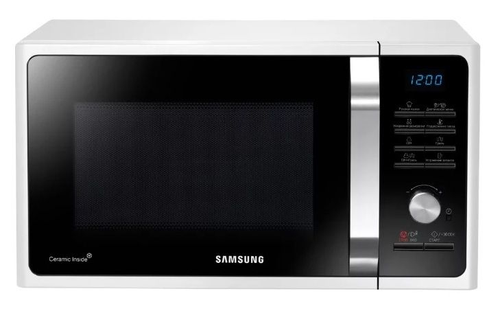 The body of the white model includes: pushbutton switches, a hinged door with a handle and a sound function. The interior decoration of the microwave increases the life of the oven. All customer reviews are purely positive. The model was loved for the quality, speed of preparation and a variety of modes.