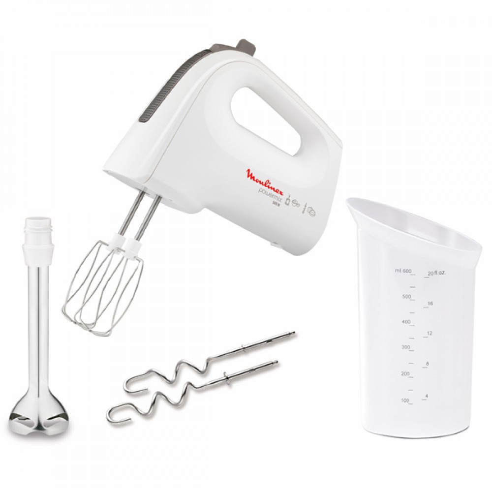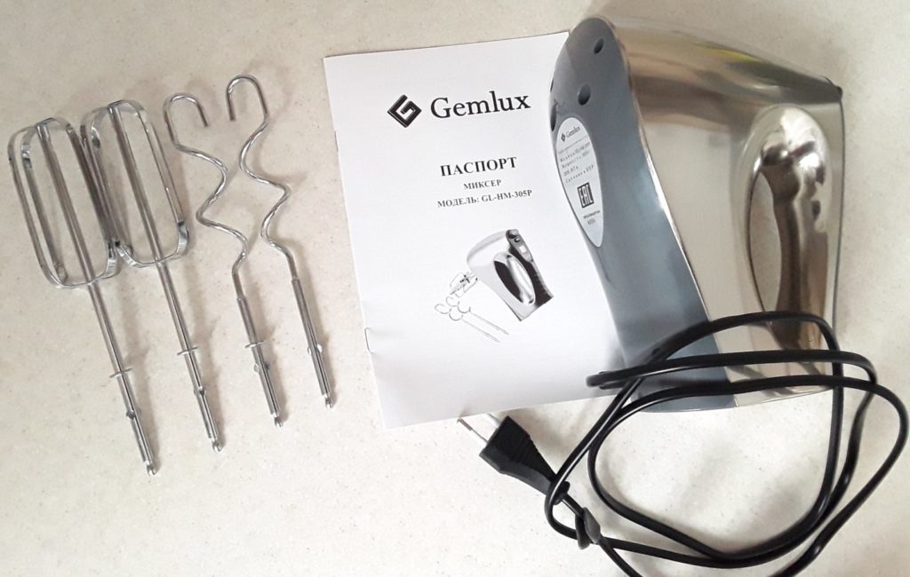 The brand belongs to a Dutch company, but is also collected in China. The 300 W device is made of plastic, the set is complemented by four metal accessories (two for kneading dough, two for whipping), the device has five speeds and a "turbo" button.