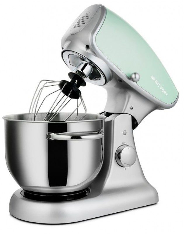 The body of the device is completely made of metal, just like the 5 liter bowl, the kit includes 3 additional attachments, a lid for the container. The device is 1000W, has 8 speeds, it is complemented by a pulse mode and protection of the motor from overheating.