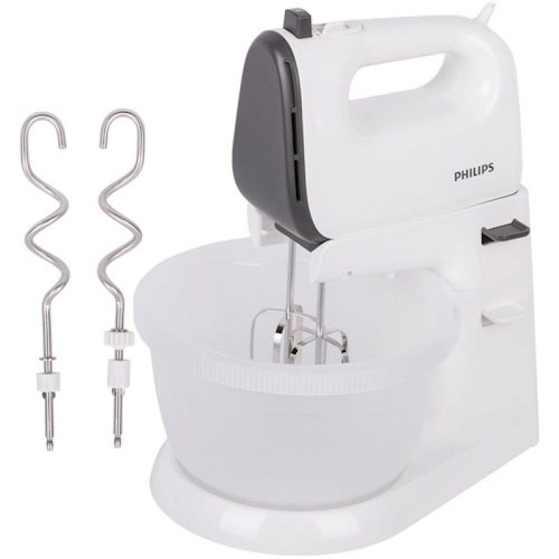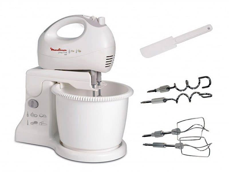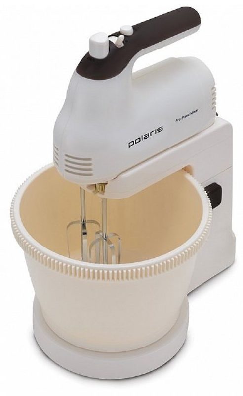Hand mixers have a lower power, as a rule, it does not exceed 240 W, they are quite light, they fit in the hands and can be safely moved. Such mixers are designed for whipping and mixing a small amount of products, have several attachments, one for whipping, another for stirring, and sometimes even a mixing bowl. The speeds in such devices can be from 2 to 9, depending on the model.