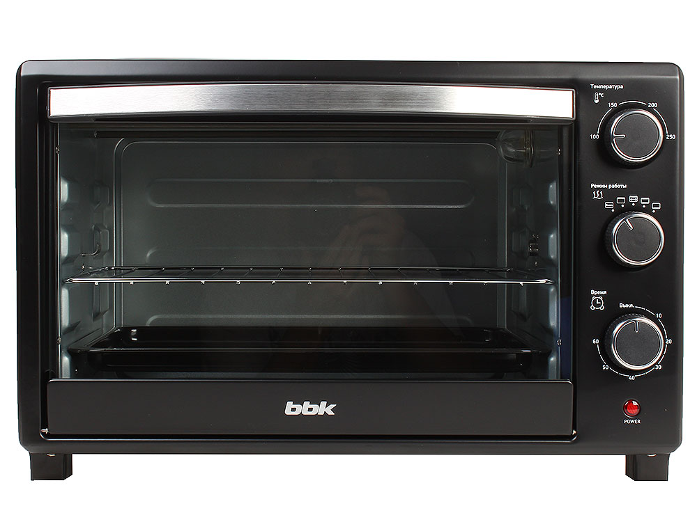 Using the first, you can select a temperature from 100 to 240 C. The second will allow you to stop at the desired mode from the six available, including defrosting, convection and grilling. The third is used to set the scheduled shutdown time of 15 - 120 minutes. The built-in thermostat is responsible for controlling the heat in the chamber, turning the heating elements on and off at the top and bottom.