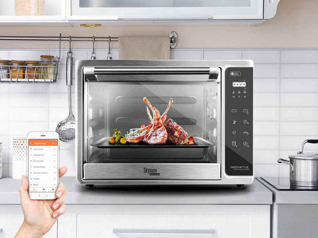 A small oven for discerning customers. The manufacturer calls the brainchild a smart cooking cabinet. Inside the model it is easy to prepare main courses, homemade cakes, desserts and muffins. Control can be carried out using an application on a smartphone. It is offered to choose 16 programs, there is a delay start and heating function, as well as a convection fan. The program is quite convenient - the machine for recipes.