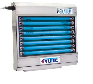 Convenient small-sized device of domestic production for home use. It consumes little electricity and is equipped with eight unbreakable high-performance lamps. Unlike other models, this one has a built-in air conditioning system that provides pleasant airflow during the tanning procedure. It is securely mounted on the wall using special fasteners; it is impossible to put it on the table.