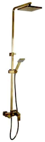 Wall-mounted single lever control unit made of brass. It goes well with a spout, rain shower, mixer, watering can. Bronze color. Dimensions: 38.5 x 85 - 130 cm. Complete with a hose, hand shower, stand, mixer and overhead shower.