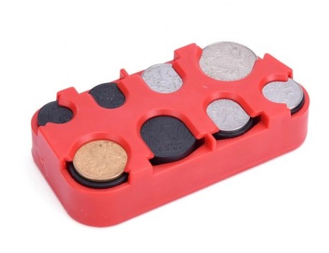 Inside each coin slot is a spring-loaded stand that can be compressed to hold up to six coins of different denominations. It is convenient to take out small change with one finger, slightly pressing and pushing the coin.