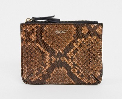 The model with animal print is popular among the brand's products. Despite the expensive price - 3990 rubles, it is often bought in online stores. The front side features the brand logo. Calfskin dyed in natural wood shades. It closes with a zipper, which ensures the safety of the contents: metal money and credit cards.