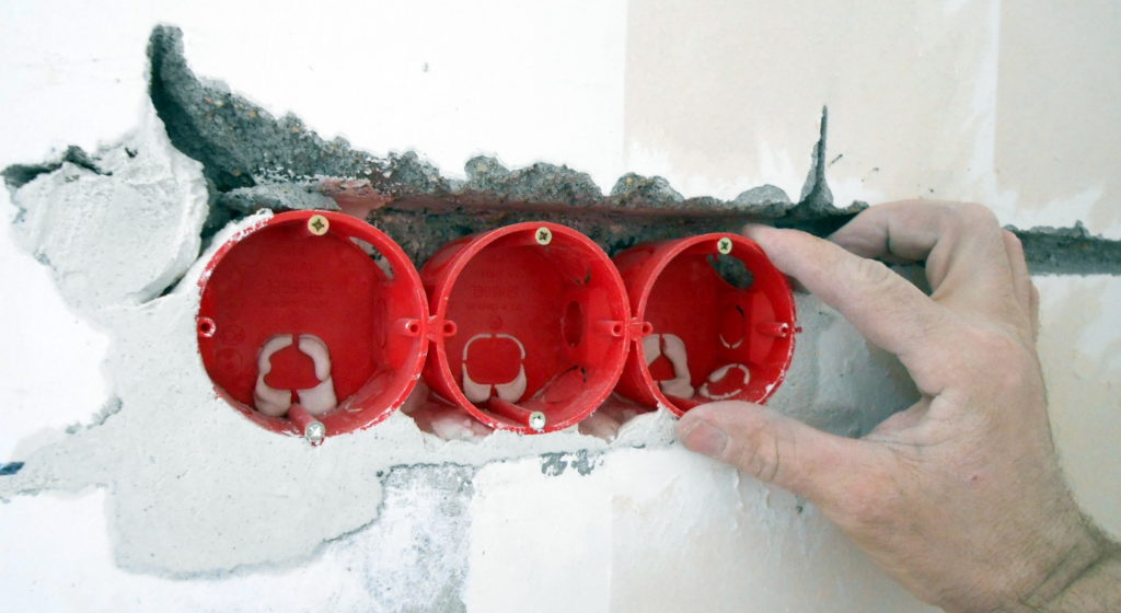 Instances are intended for a plastered wall, whose installation involves hiding the body under the thickness of the finishing material. It is customary to use similar products for walls made of solid materials (brick, foam block, etc.). To place such a socket, you must use a drill with a special tip. Using a drill, a recess is drilled for the case, then a groove is hollowed out for laying the cable. The end of the wire is installed in the compartment of the box, then the socket is placed in the recess in accordance with the level. After that, the holes are filled with finishing material, then the master proceeds to the final work.