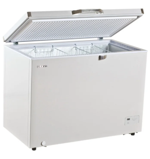 Excellent freezer made in Russia. Spacious and practical: a usable volume of 315 liters plus a convenient internal organization with baskets allows you to place a large number of products of different types. The minimum temperature is -25 and the super freeze mode will easily keep a large supply of provisions throughout the year. The chest does not have additional functions, but, at the same time, it has everything you need for comfortable use, both in everyday life and in production or in trade.